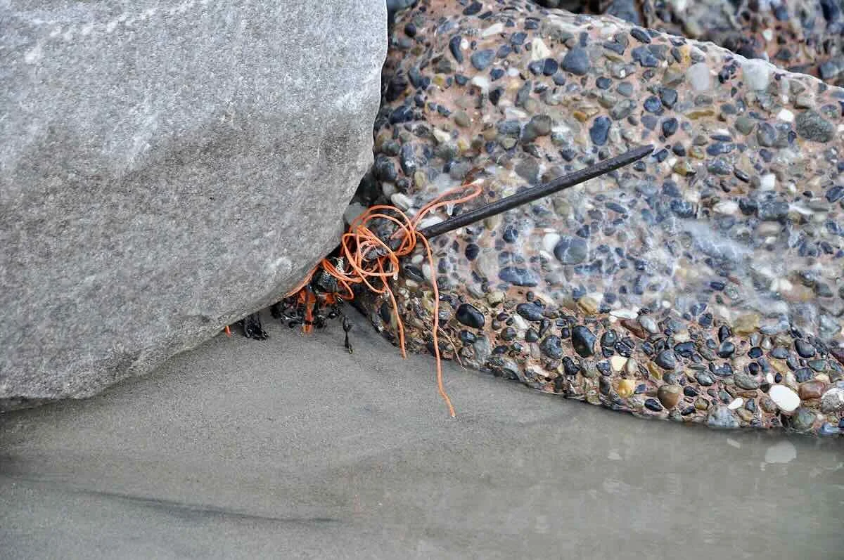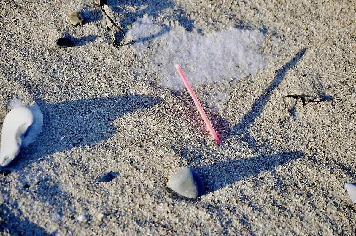 Når jeg taler om øjebliksskulpturer, så mener jeg de små konstellationer, jeg finder i naturen – særligt ved havet. Det er ikke noget, jeg selv bygger eller arrangerer. Tværtimod er det naturen selv, der har lavet dem. Det kan være et stykke tang, der er filtret ind i en gammel korkprop, en plastflig, der blæser op mod en sten, eller en ophobning af skum og drivgods, som har lagt sig på en måde, der pludselig virker fuldkommen.